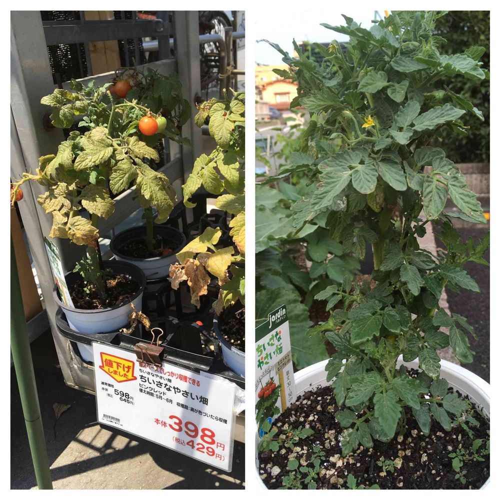 右のは7月12日に左のと同じ売り場で買ってきて、ダメな葉を切り落として再生に期待してたミニトマト。