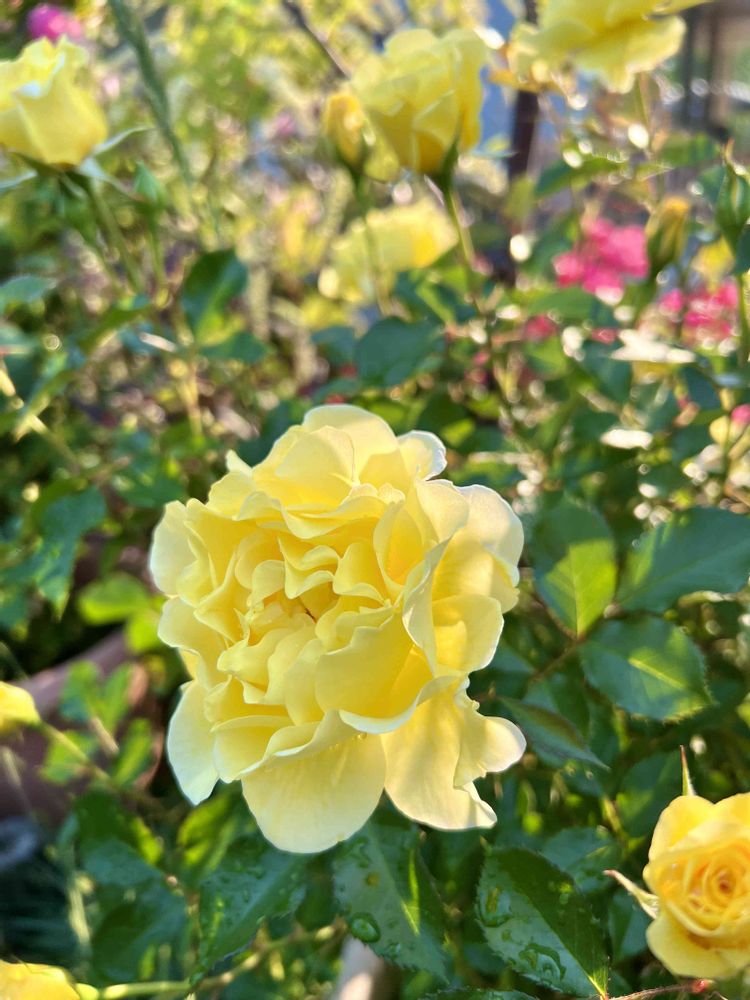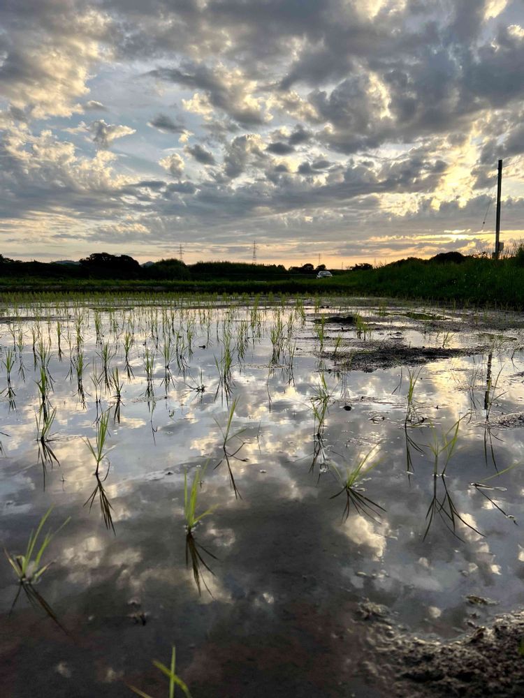 メイさんのバラ,米の苗,夕暮れの投稿画像