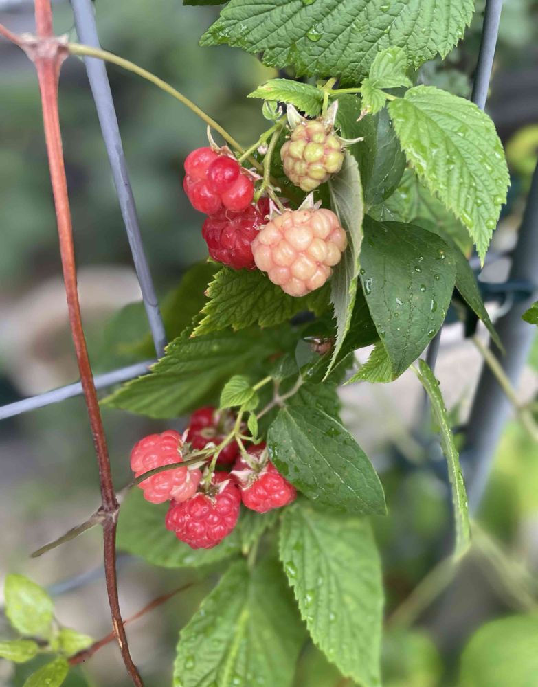 ①②ふと見るとラズベリーが真っ赤になっていました 去年お迎えしてちょうど1年 可愛いくて💕