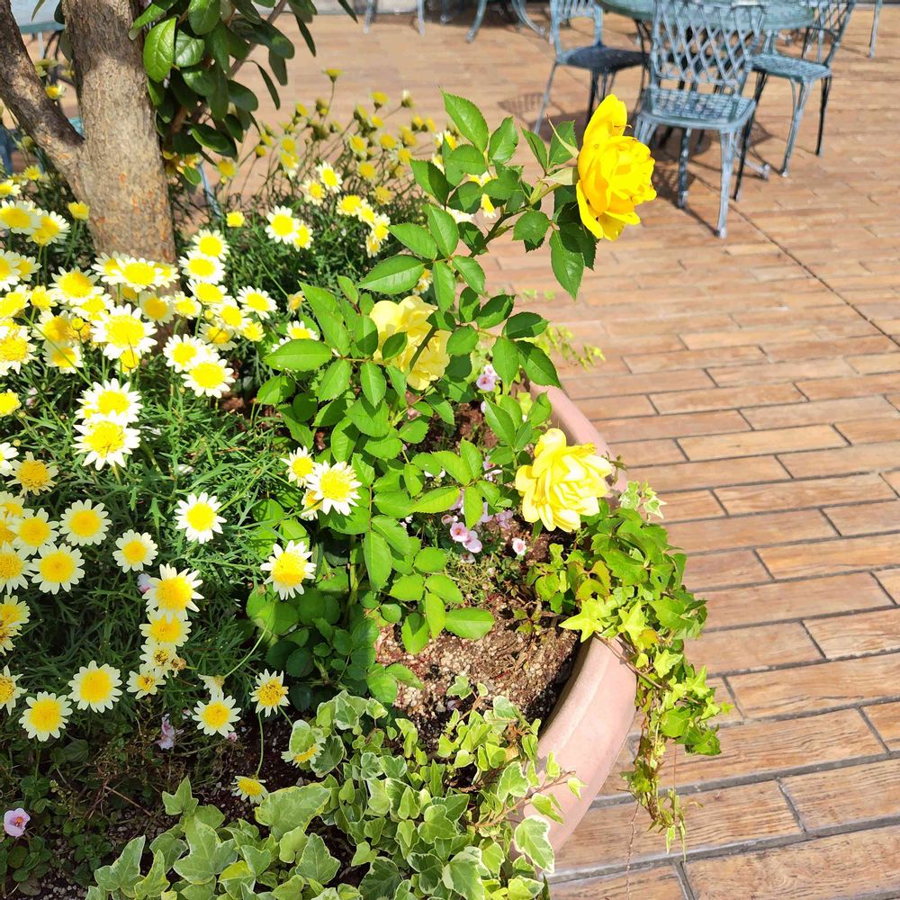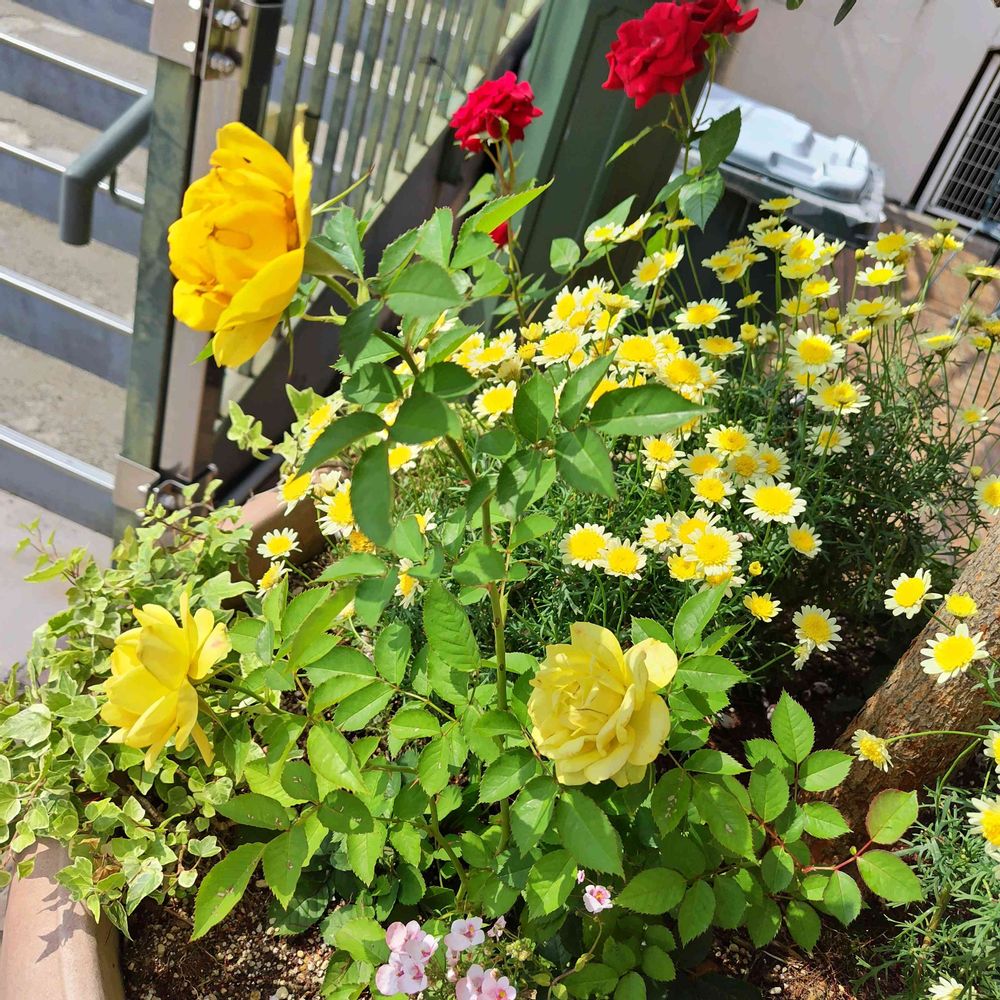 マーガレット💛🤍💛🤍💛🤍🌱🌿とミニバラ…