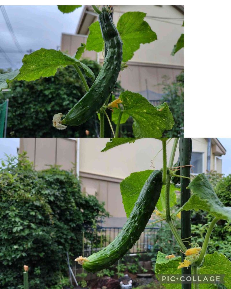 昨日の夕方見た時まだ 細かったので採るのやめていた2本のきゅうり