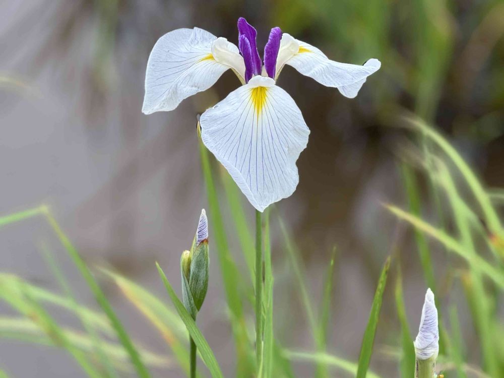 狭山丘陵を、背景にした花菖蒲園、北山公園のお花達だそうですねー✨💜🤍💜🌿