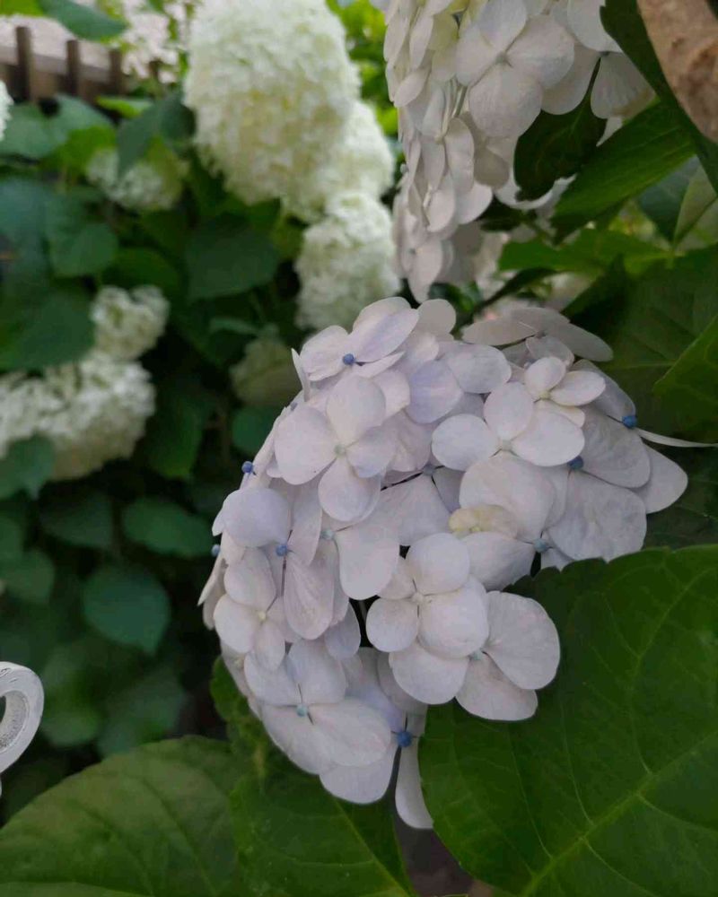 アナベルと比べてみれば、なんとか水色が引き立ちます。