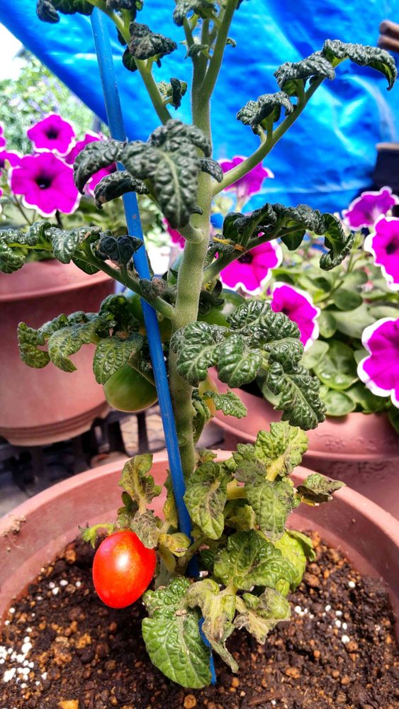 自分は夜勤空けで、今朝帰って来たら、既に奥さん2個なっていたトマトを食べたとのこと、お味は酸っぱさは無いけど、皮が固いと申していました。😊甘さはこれからのに期待します。😃☺️