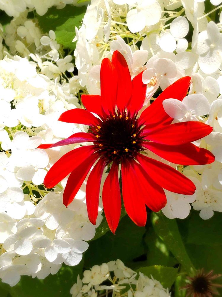 とある珈琲屋さんの入口に咲いてた白い紫陽花も綺麗ꕤ︎︎ひょっこり赤いお花も(,,>᎑<,,)カワイイ*•.❁︎*