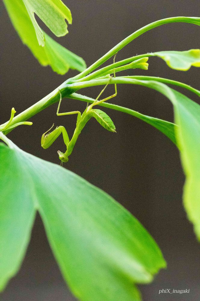ぱっと見では気がつかず,カメラを向けて何枚か撮るうちに小さなカマキリが居るのに気がつきました。