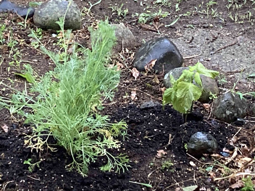 右のは 実家からお母さんに2年前にもらったシソ。なくなったと思ってたら今年生えてた😊お母さん見てるかなー。