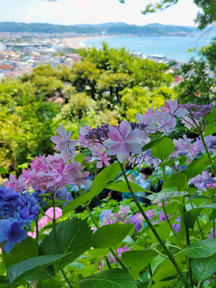色んな色や種類が植えられています。山の上のほうから由比ヶ浜の海岸がみえました🌊
