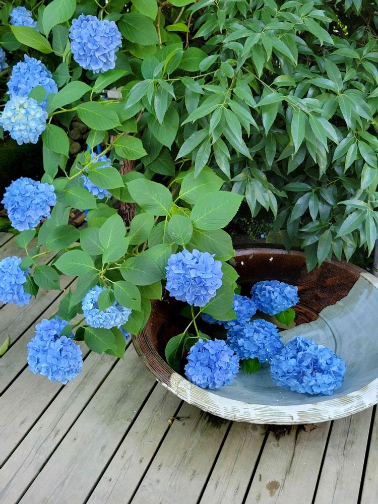 こちらは明月院ブルーの名のとおり、キレイなブルーのあじさいがほとんどでごく稀に違う色のがある、という感じ。
