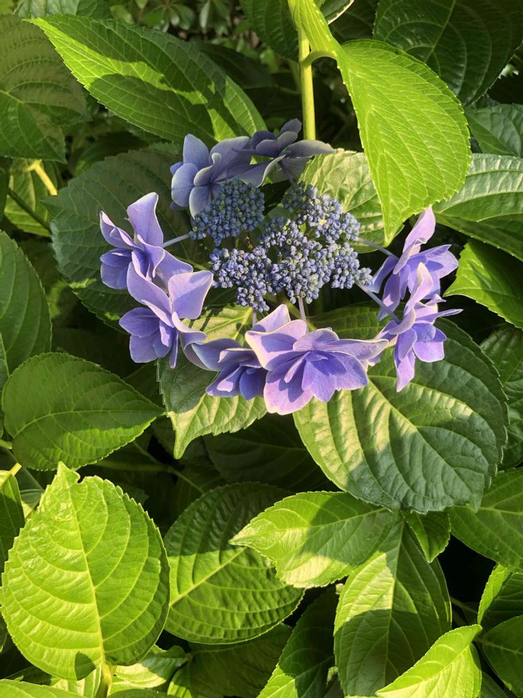 夕日に輝く「ガクアジサイ」をパチリ!📸💜🌿😊😄🌇👌
