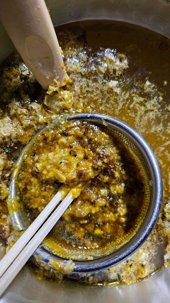 今回は、簡易的なので、アルミ鍋にお湯を入れて、搾りかすを茶こしで、味噌を溶かす要領で、すぐにサクっと終了でした