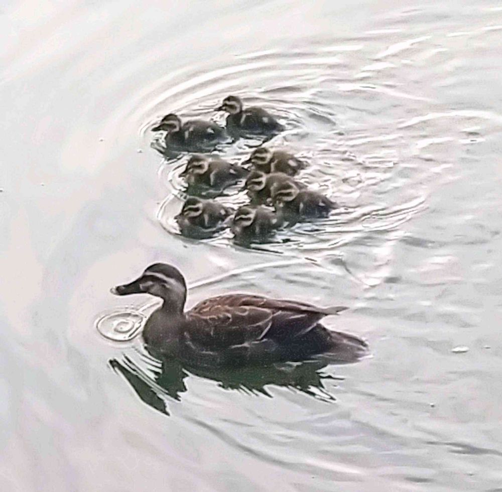 かるがもの親子楽しそうに泳いでますね💕︎💕︎