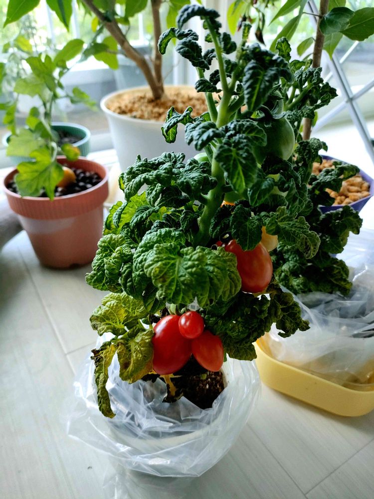 小さいながらももうすでに実がみっちりとなっており、さらに赤くなってます!90cmぐらいまでは成長するようです。今後が楽しみ☺