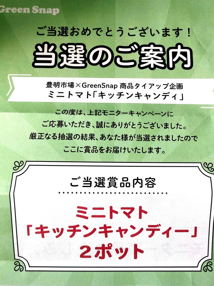 ミニトマトのキッチンキャンディーのモニターに当選しました。