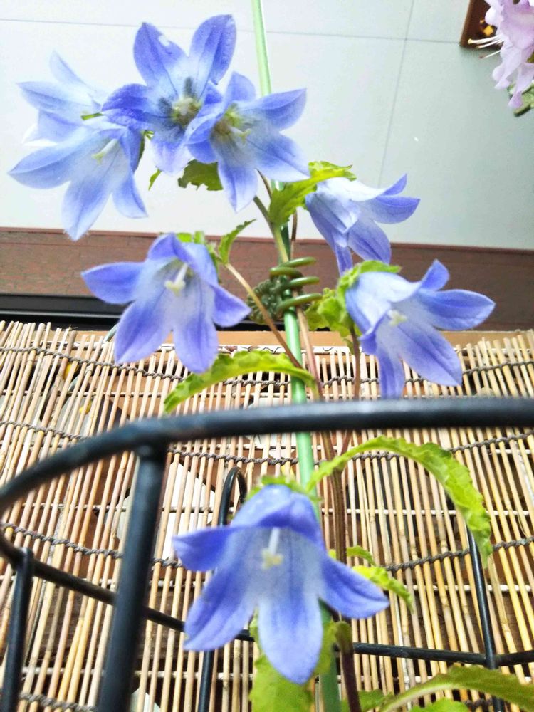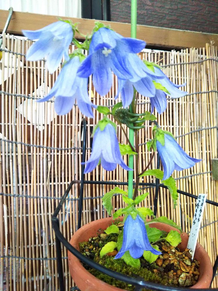 <地道投稿>おはようございます☁️🌂☀️に変わりました😓「ツリガネソウ(皿ケ嶺キキョウ)」初😍全(八)輪開花しました。玄関入口檻の中ですが😉前回投稿から一週間目になりました。