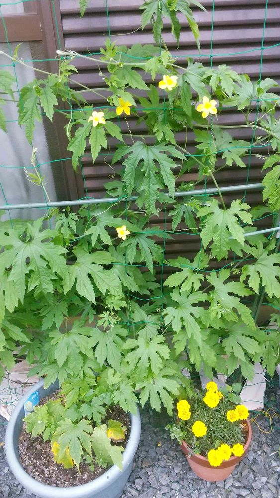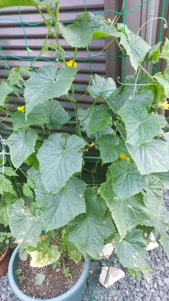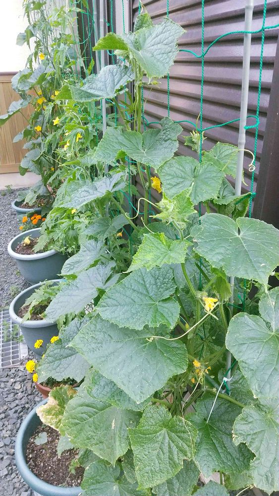 プランターで育てている、キュウリとゴーヤ☺️