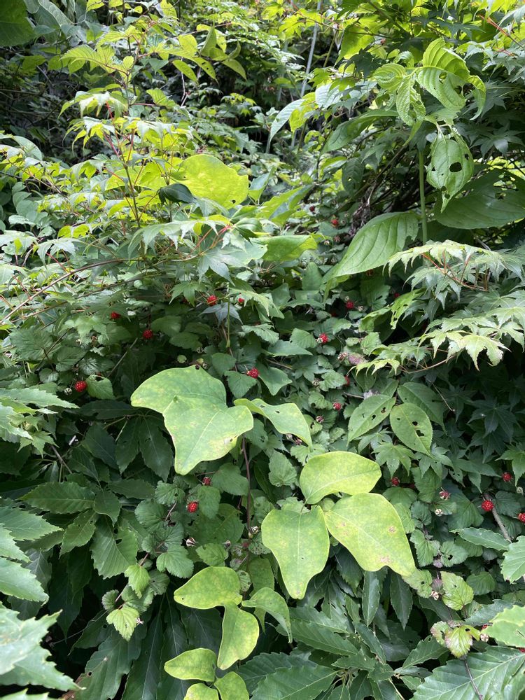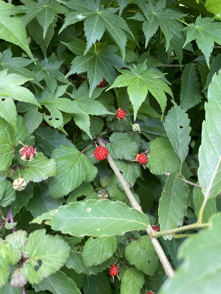 ニガイチゴという名前の通り種子を噛み砕くと苦味を感じるのですが果肉は甘酸っぱくて美味しいです❤️木苺の実は見つけるとテンション上がりますね