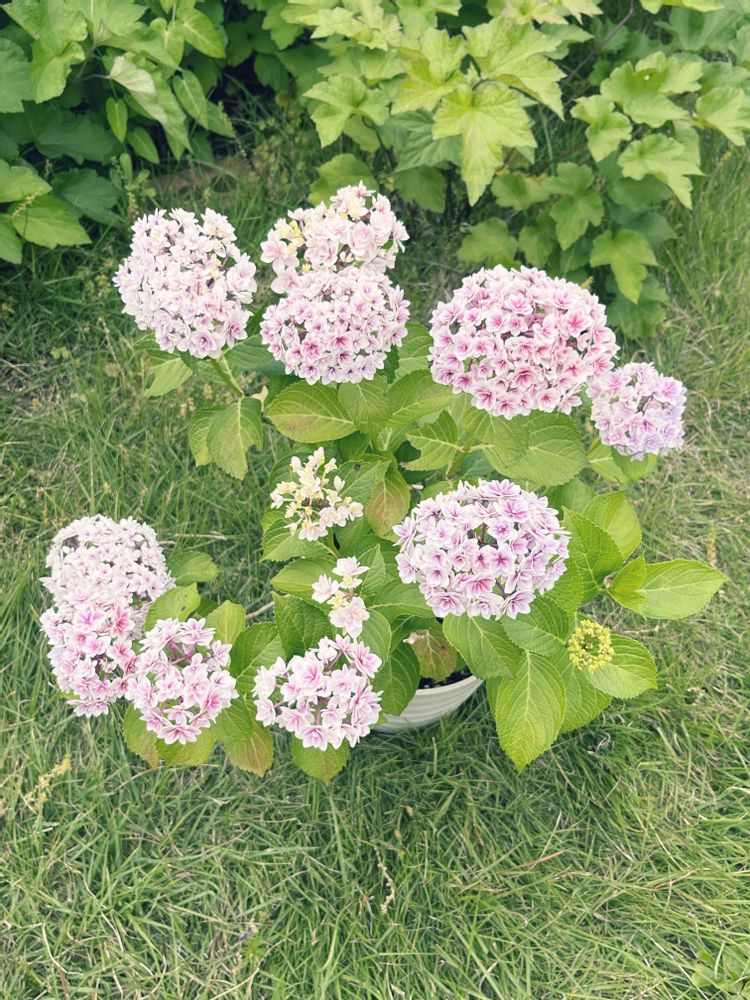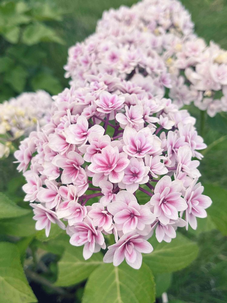 白地にピンクの我が家イチオシの可愛い紫陽花💕花付きもとても良くてズボラなお手入れ😅のわりに年々花数が増えくれてます。