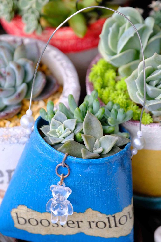 🔵爽やかなブルーのリメ鉢に🧸のチャームも涼しげで可愛い❤️