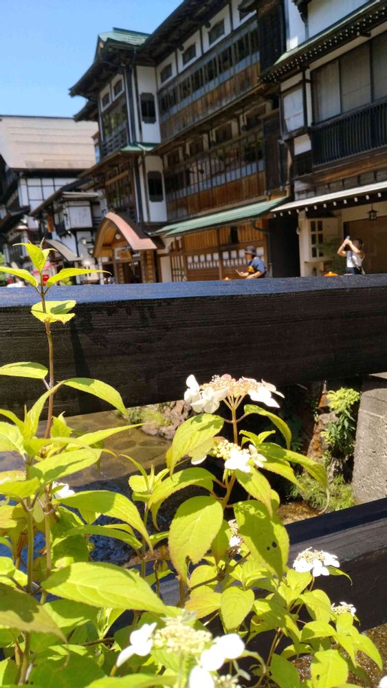 昨日の山形県銀山温泉、あちこちにさりげなく色々な花が。
