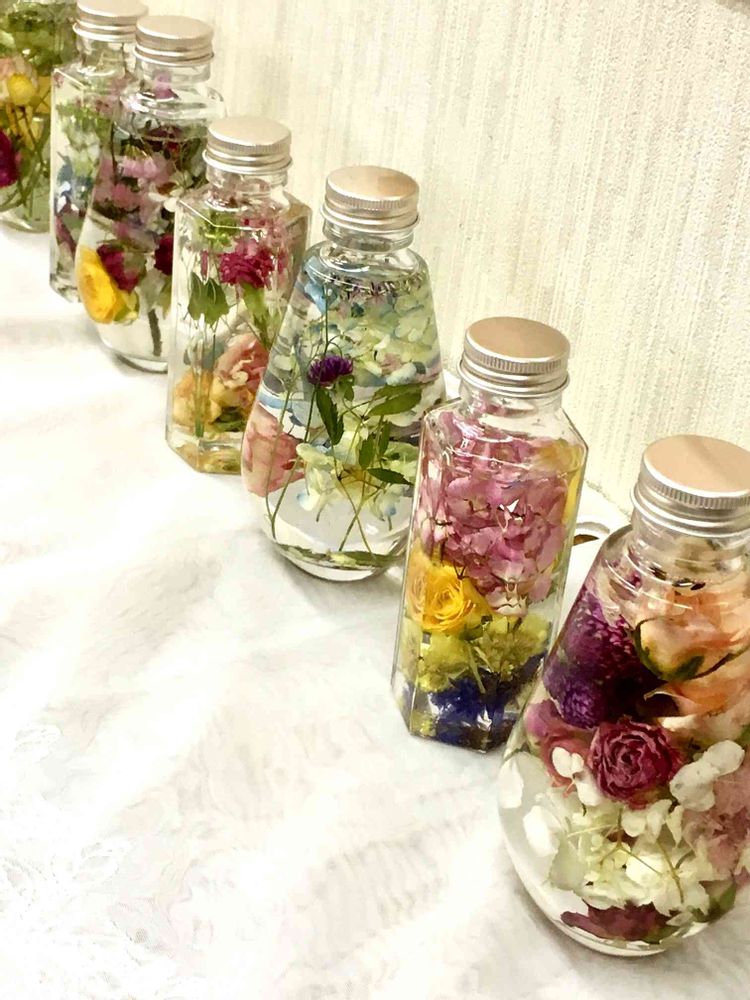 可愛い(๑>ᴗ<๑)ハーバリウム出来ましたね🤗🎶1時間に2個ですか。凄いです。私は、前回2時間で1個作成したような😣💦