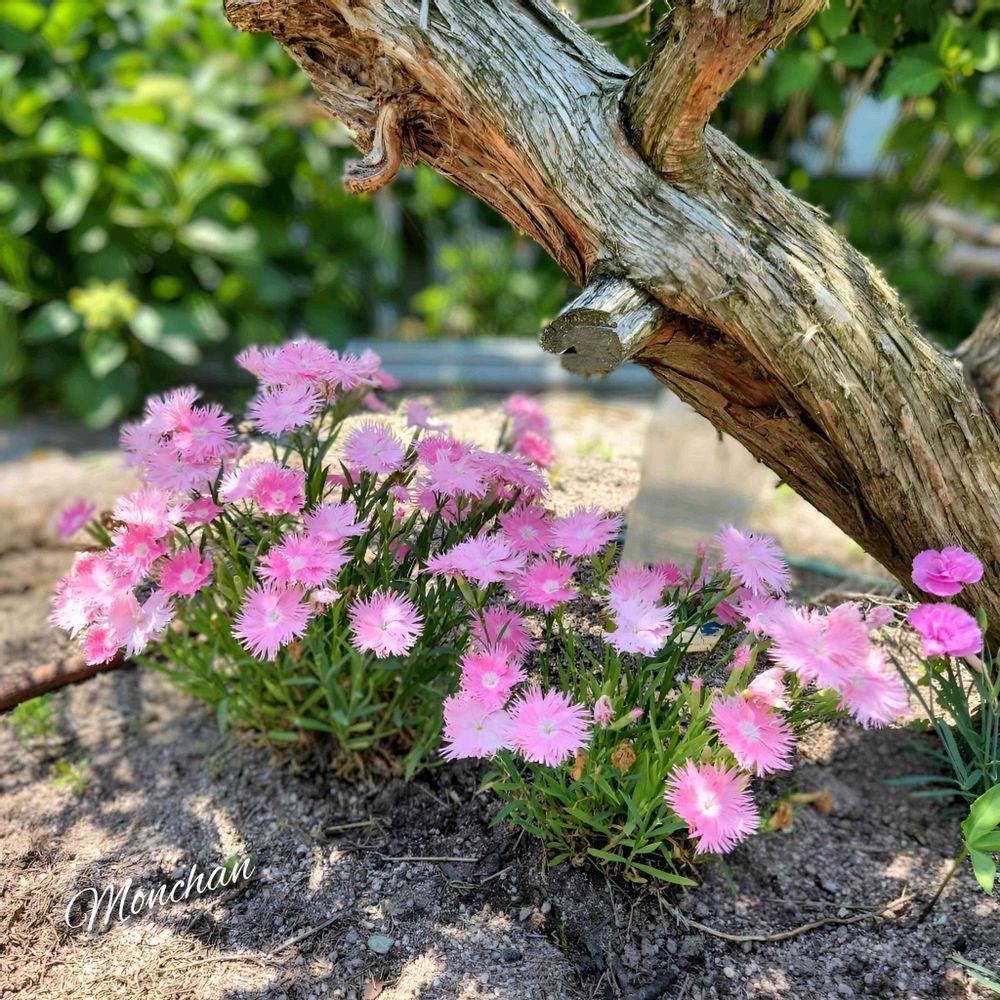 ①庭木の中に、ちょこんと澄まし顔で毎年咲く撫子🌸まだ枯れる前で撮れて良かった😊
