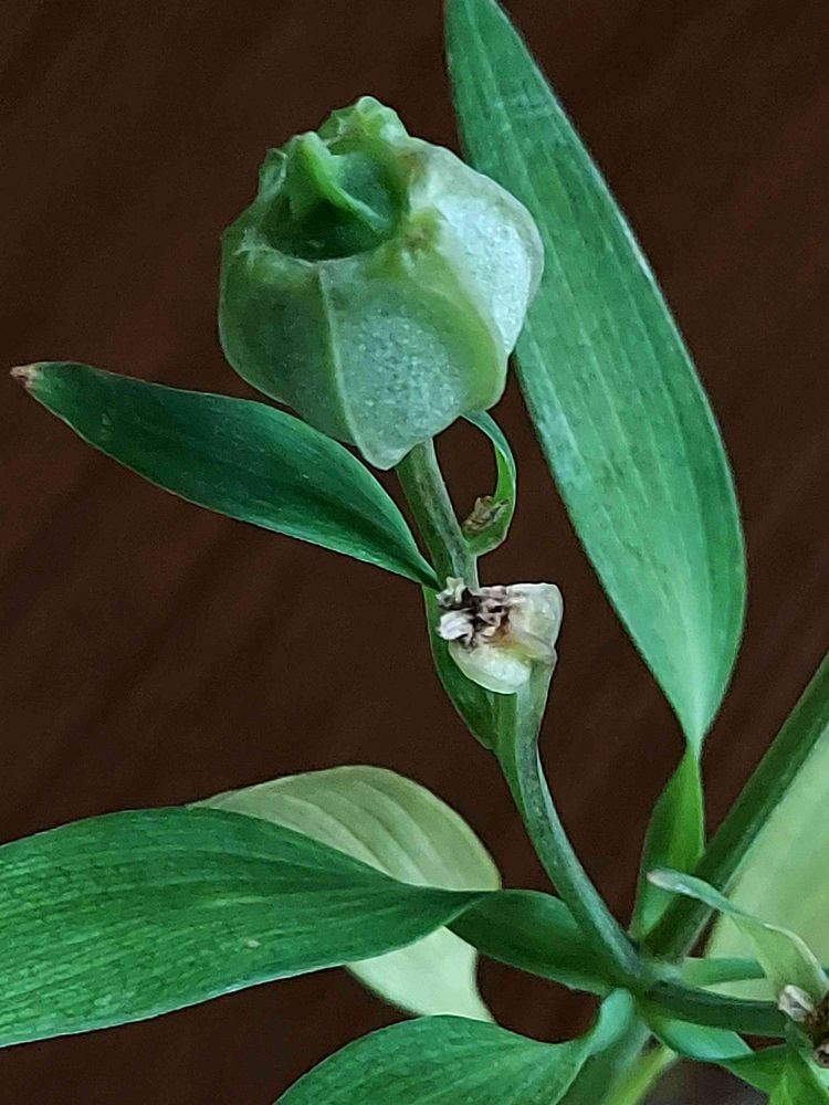 「アルストロメリア」🩷の花が咲き終わりその後も見ていたら少しずつ膨らんできていて実(種)?のようになってきてました 形も変わってます💓