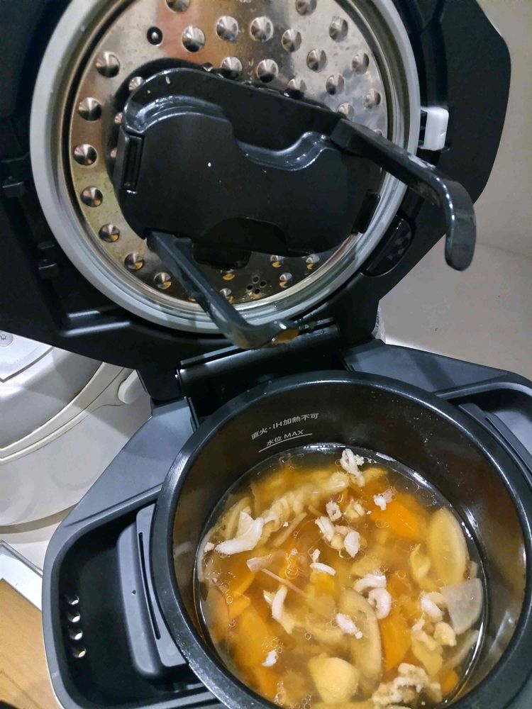 3️⃣4️⃣夕飯にけんちん汁を作りました🤤😋 材料、調味料🧂を入れてスイッチを押して、出来上がりを待つだけ💕😍🤩🤗