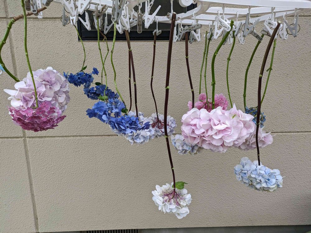 紫陽花のドライフラワー作るの‼️お花を洗って干すの🤔