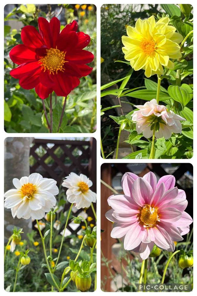 フツーのダリアですが、去年6色お迎えしたら、とりあえず4色カラフルに咲き始めましたꕤ︎︎·͜· ︎︎