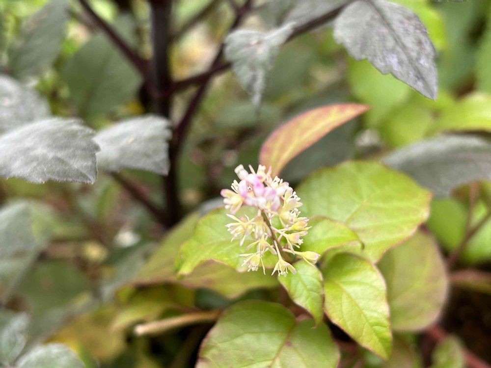 ダリアと同じ鉢にいるジュズサンゴも冬を越し、花をつけました。その下にはたくさんの可愛い零れ種ちゃんたちが🌱🌱🌱秋に鉢上げできるかな…