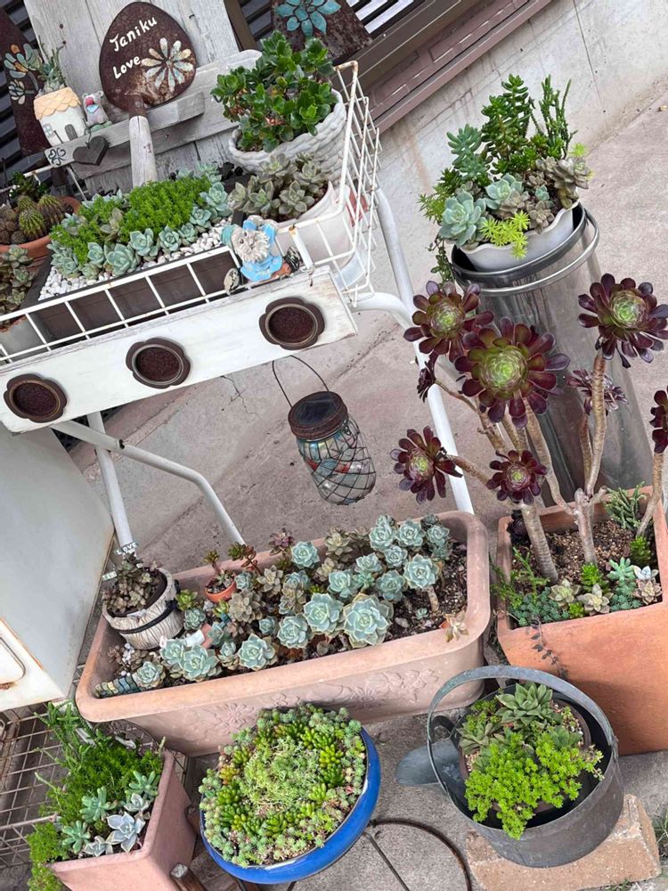 始まりは知り合いの方に頂いたたった1つの多肉植物からでした!それがいつの間にか庭中、様々な種類の多肉植物でいっぱいに💕 様々な器で寄せ植えしたりして楽しんでいます🍀 今は、友達の影響でドライフラワーにも夢中です🥰 家の中では農家をしていた夫の実家から出てきた古い農機具や昔の家具などをリメイクし自分で描いたトールペイントやパッチワークなどと共に飾りインテリアを楽しんでいます☺️