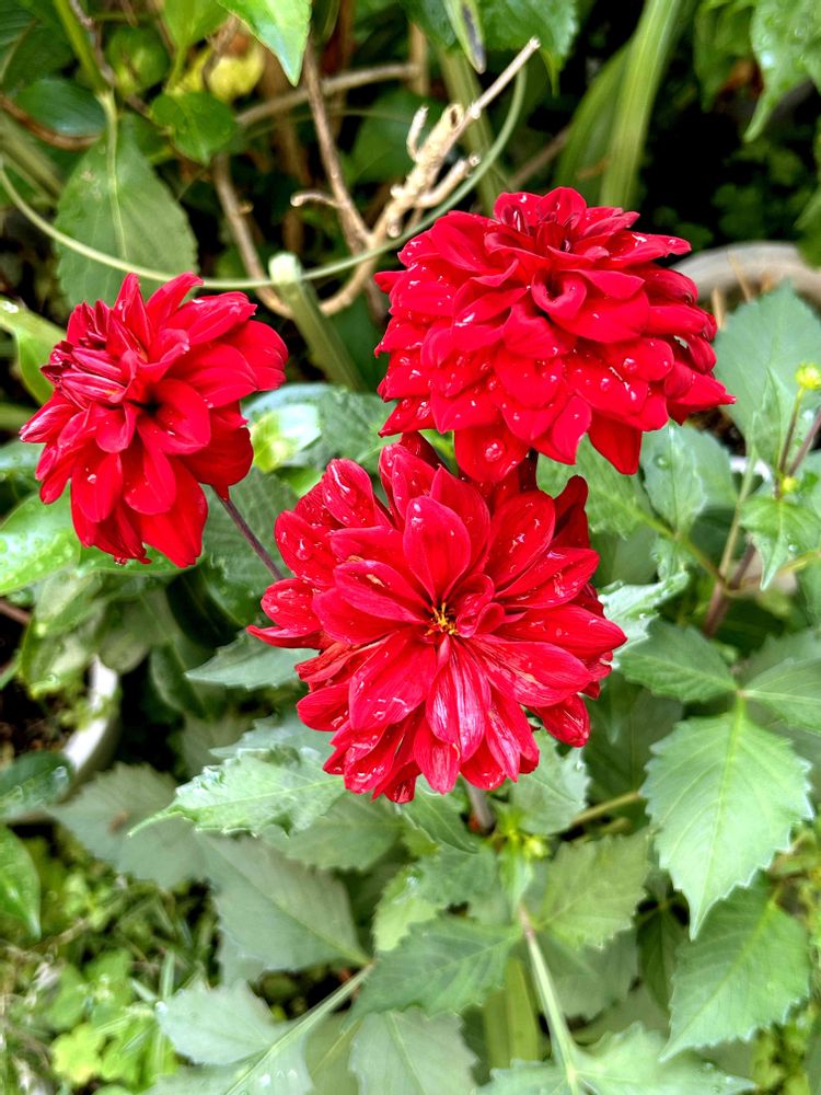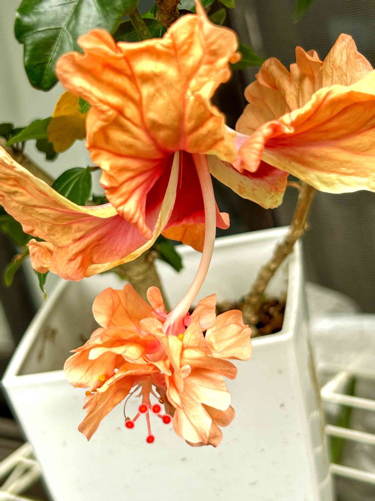 3年目のハイビスカス フラミンゴと3年目のダリアです🌿🧡🌿❤️