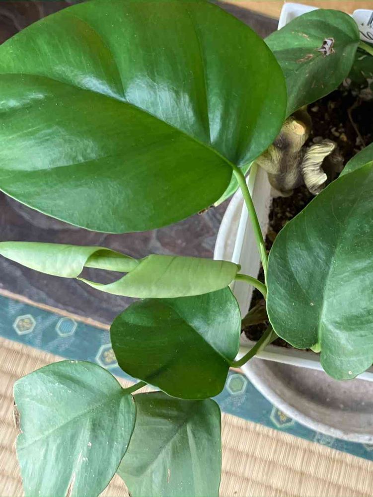 何とお優しい😊モンステラ、あの新芽🌱