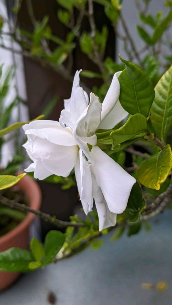 一重咲きの梔子が終わりかけたところで八重咲きが咲き出しました。