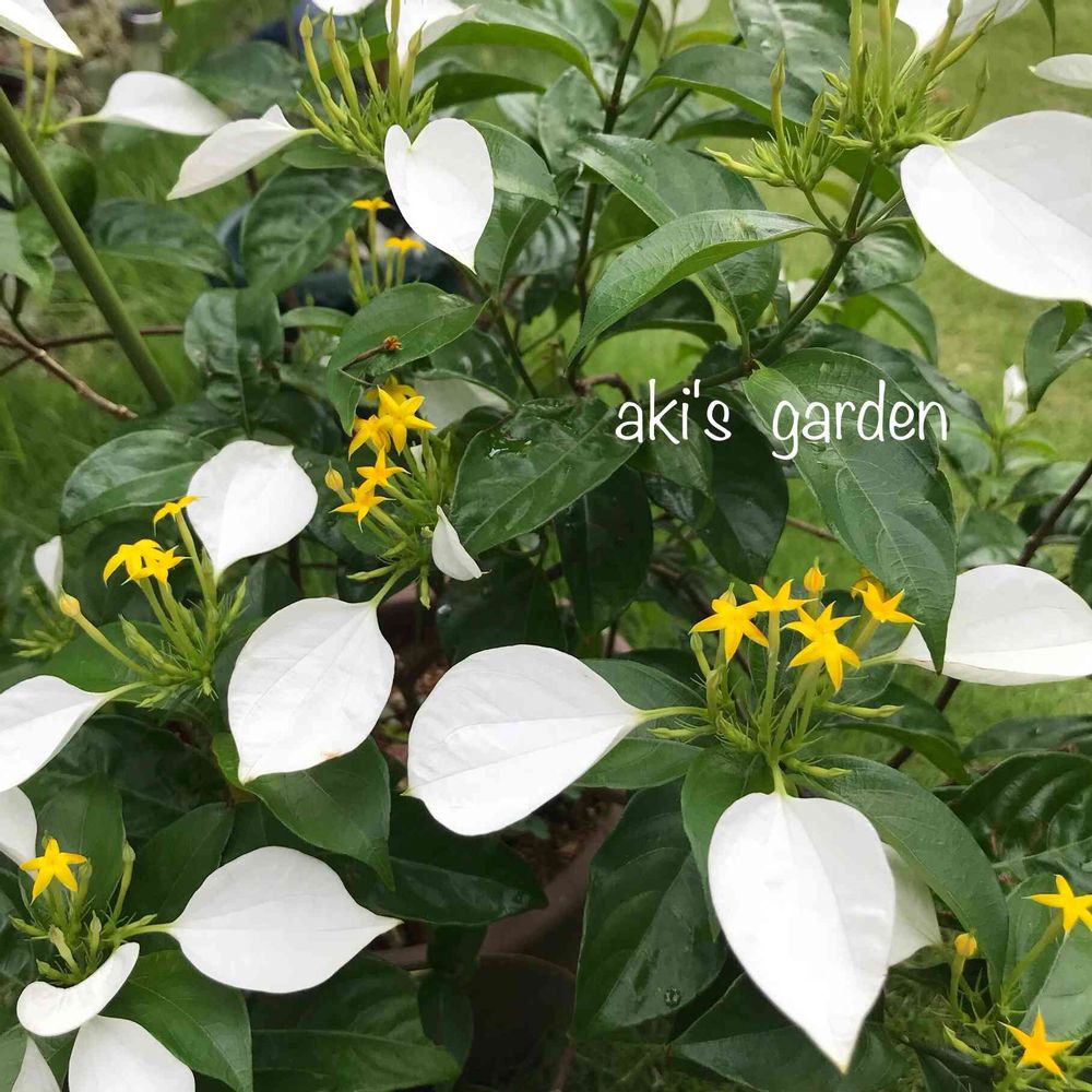 他の植物が暑さでグッタリしているなか、暑いほど白が鮮やかで元気にしているホワイトコンロンカ。熱帯の植物なんでしょうね。