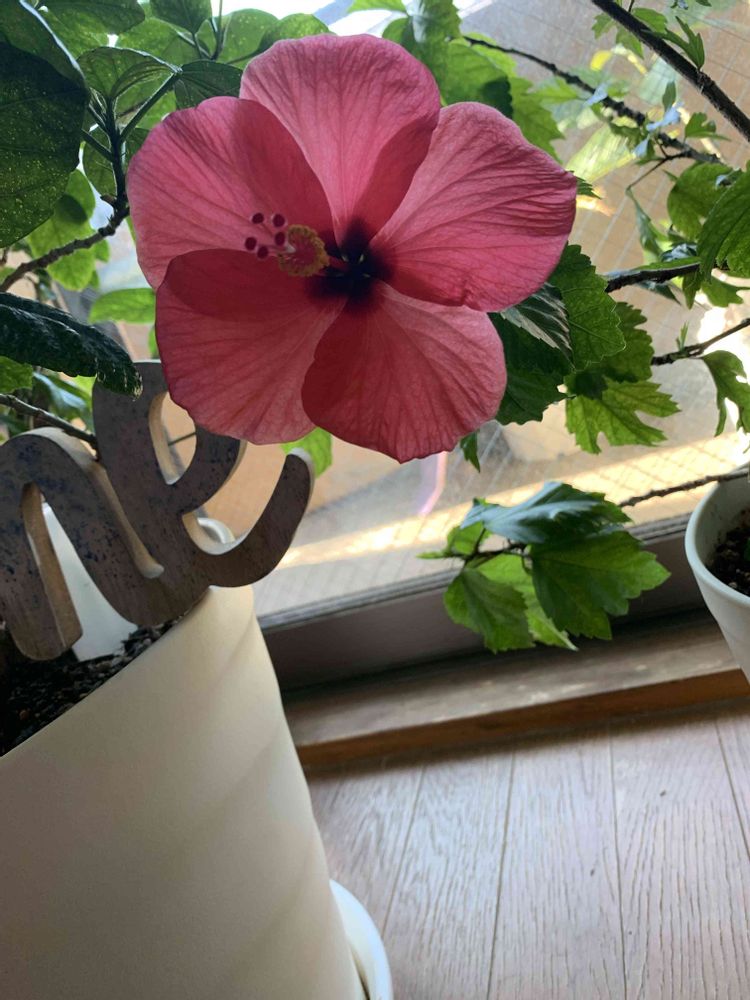 朝仕事に行く前に咲いてくれた我が家のハイビスカスサマーブリーズ🌺ちゃんです❤️