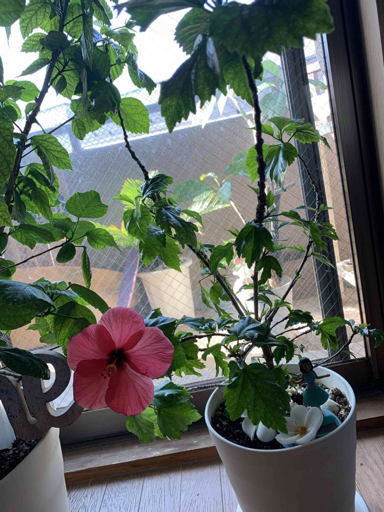#ハイビスカス#ハイビスカスサマーブリーズ#開花#いい天気#青い空#窓際