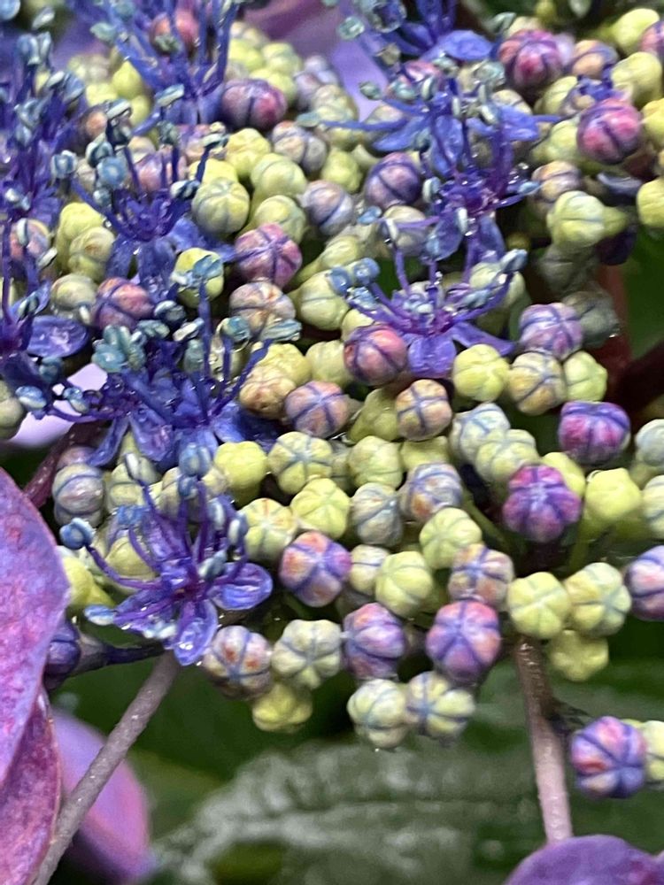線香花火🎇を思わせる、華やかな装いを見せて咲き誇る、紫陽花の華やぎ素敵です(⌒‐⌒)🎵