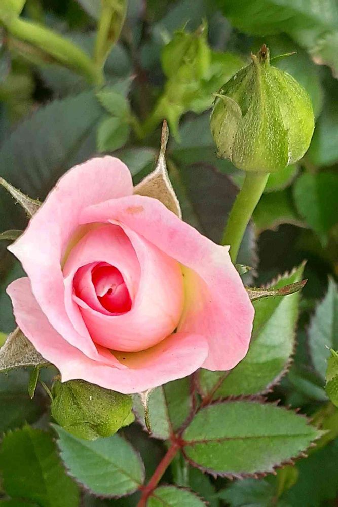 4色のバラどれも前回剪定したあとで、ニョキニョキ新芽新葉が出ています🌿