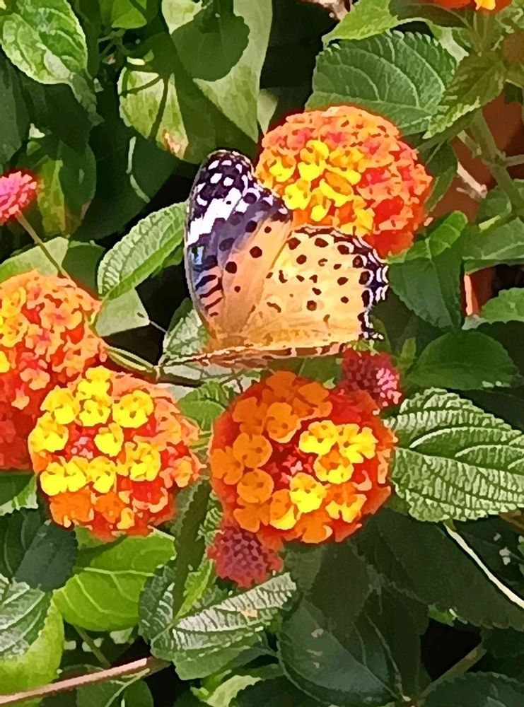 まみぃさんのランタナ,ミニバラ,ツマグロヒョウモンの投稿画像