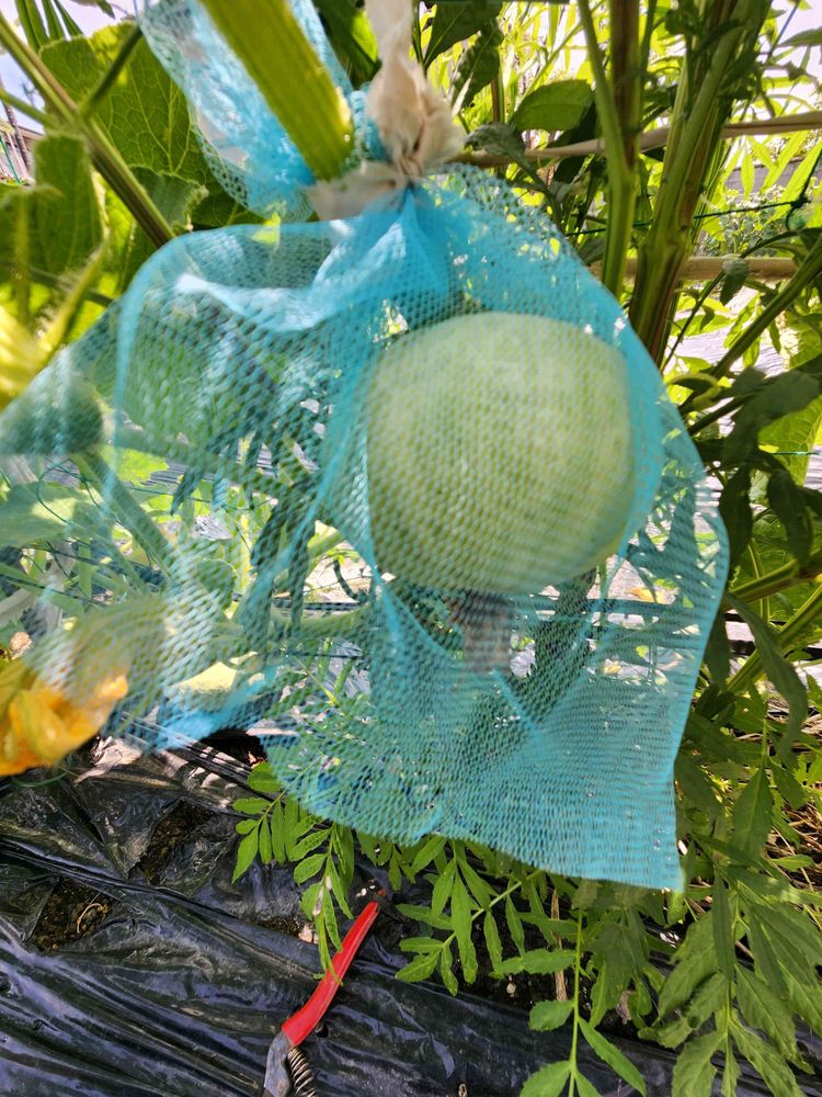 空中のは、ネットで吊り下げました。美味しく育ってねー。🎃