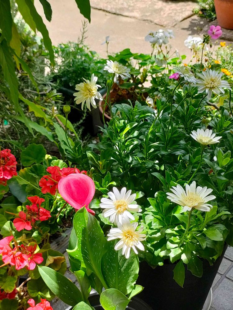 午前中に植木鉢のお花が咲いてるものは玄関口と車庫に避難させました✌️
