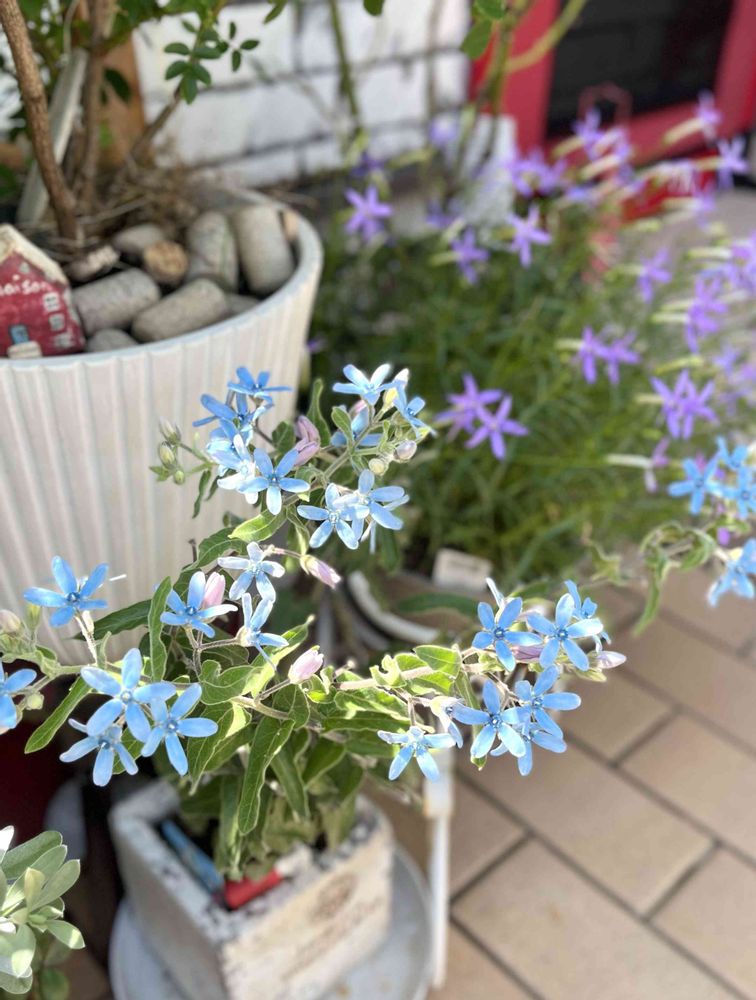 2枚目はブルースターとイソトマが涼しげな彩りの玄関ドア前🩵💜