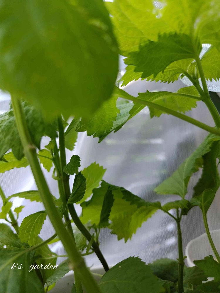 大葉🌿ランドリーネット上からふんわりかけるのかな~? 家はそのまんまワイルドに育ててたら少し虫に食べられてた😆💦