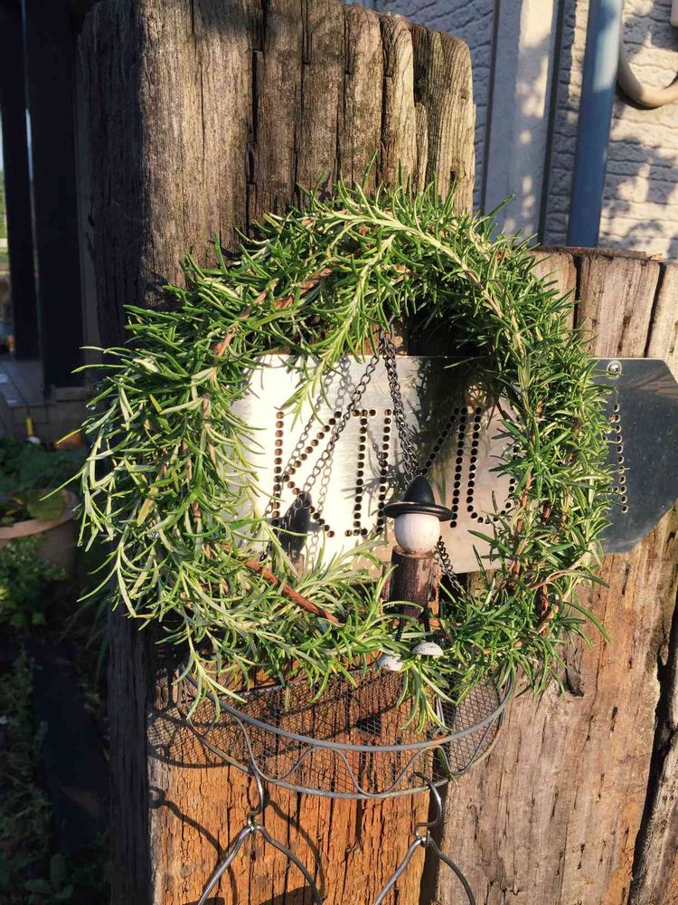 ローズマリーの木が大きくなり過ぎて、刈り込んだのですが、何も利用しないのはかわいそうなので🤔一応リースにしました。