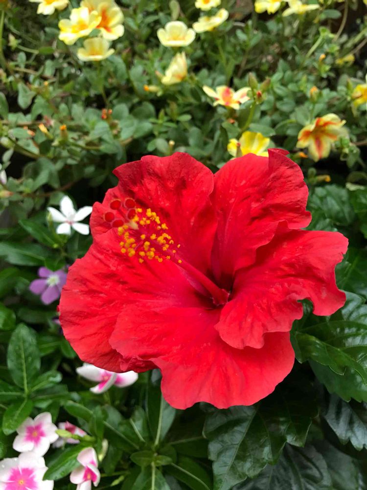 小さな庭,ニチニチソウ,ハイビスカスの投稿画像