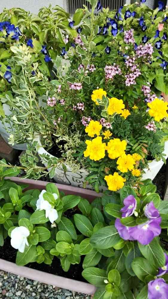 そんな中でも元気なのが、マリーゴールドと、5月の終わりからずっと咲き続けているアンゲロニア、そして零れ種から花が咲いた日日草とトレニアです🌸😃🎶
