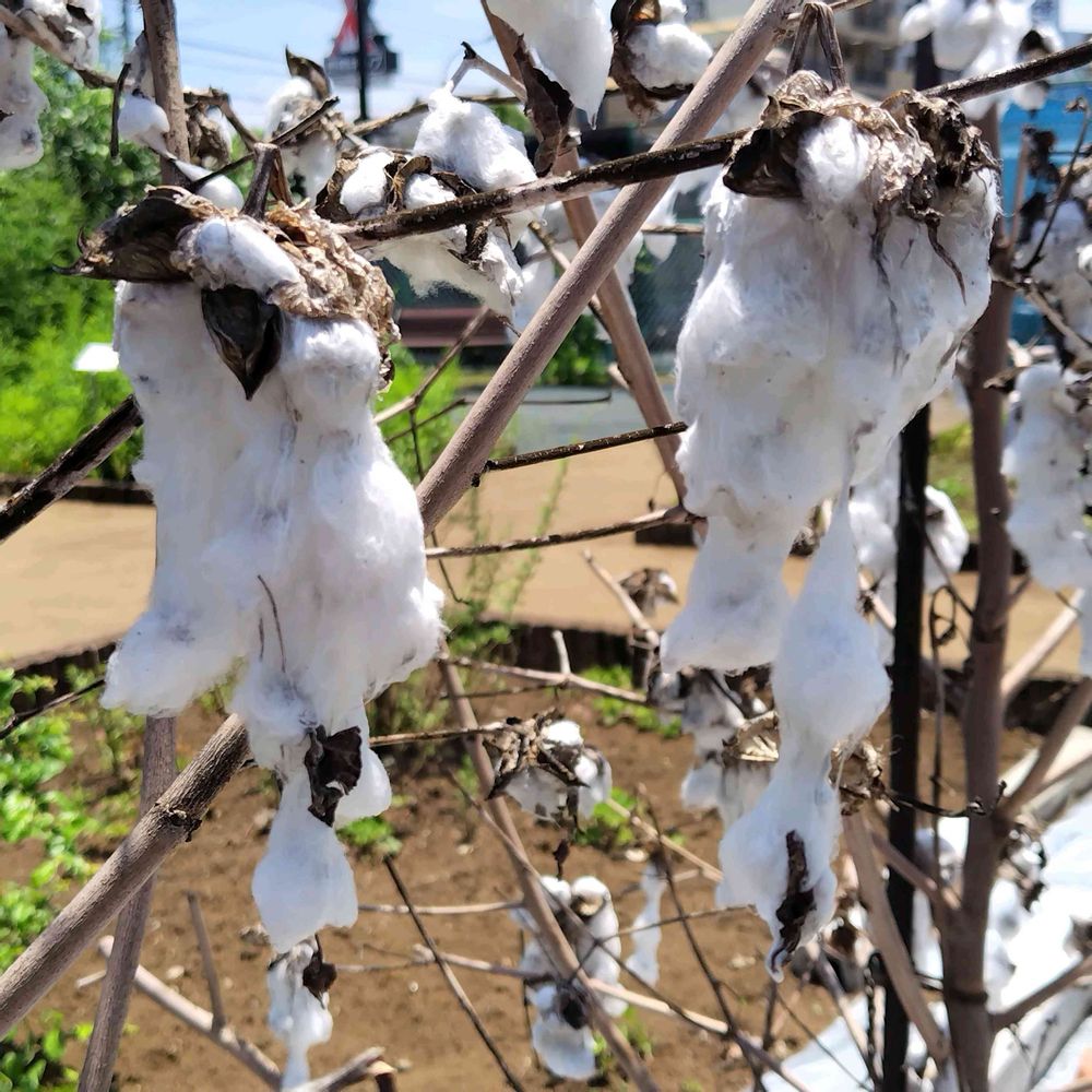 写真①②はリクチメン(陸地綿)といい、写真のように綿としても使われますが種子は油、根皮は薬にもなるそうで、とても利用価値の高い植物です👏