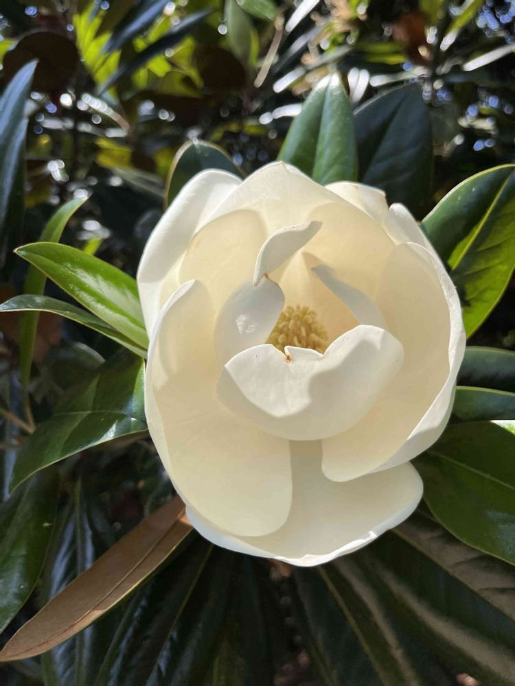 大木に咲く真っ白なお花、タイサンボク🤍🤍